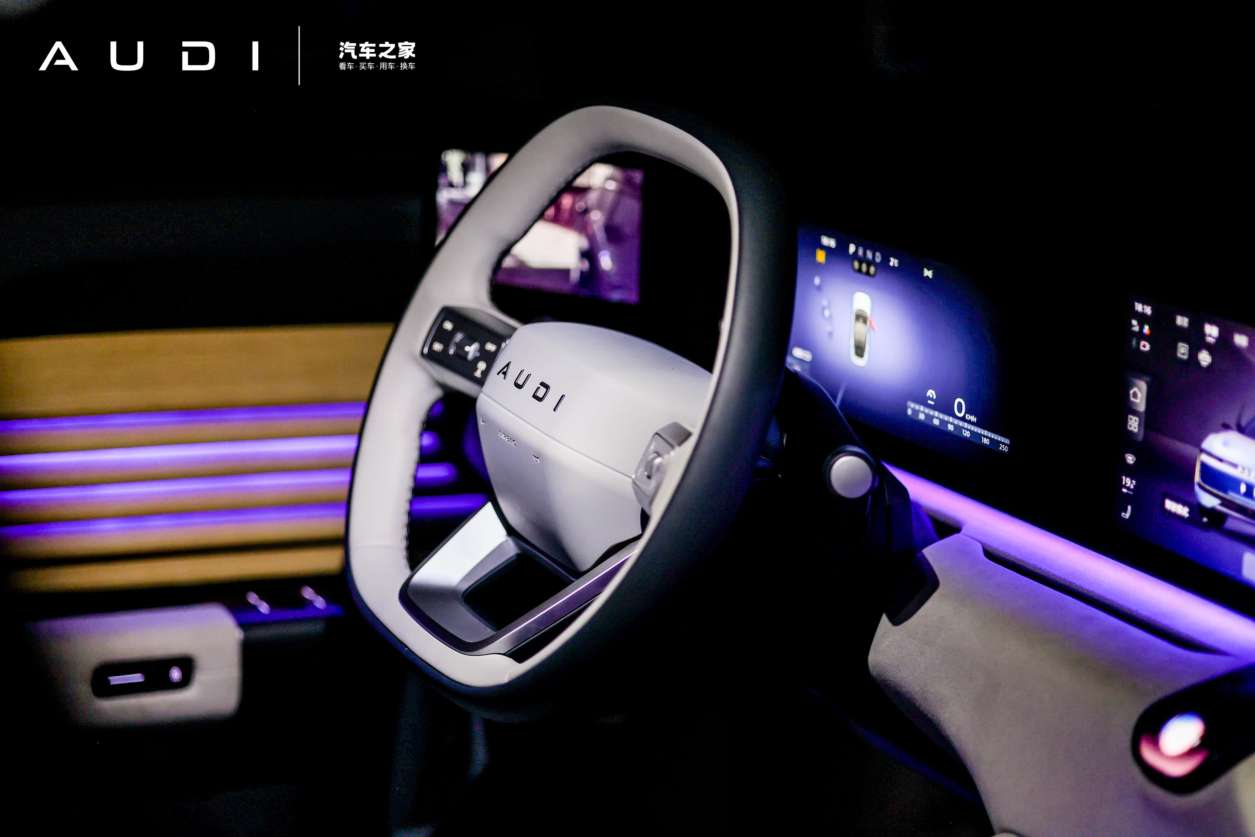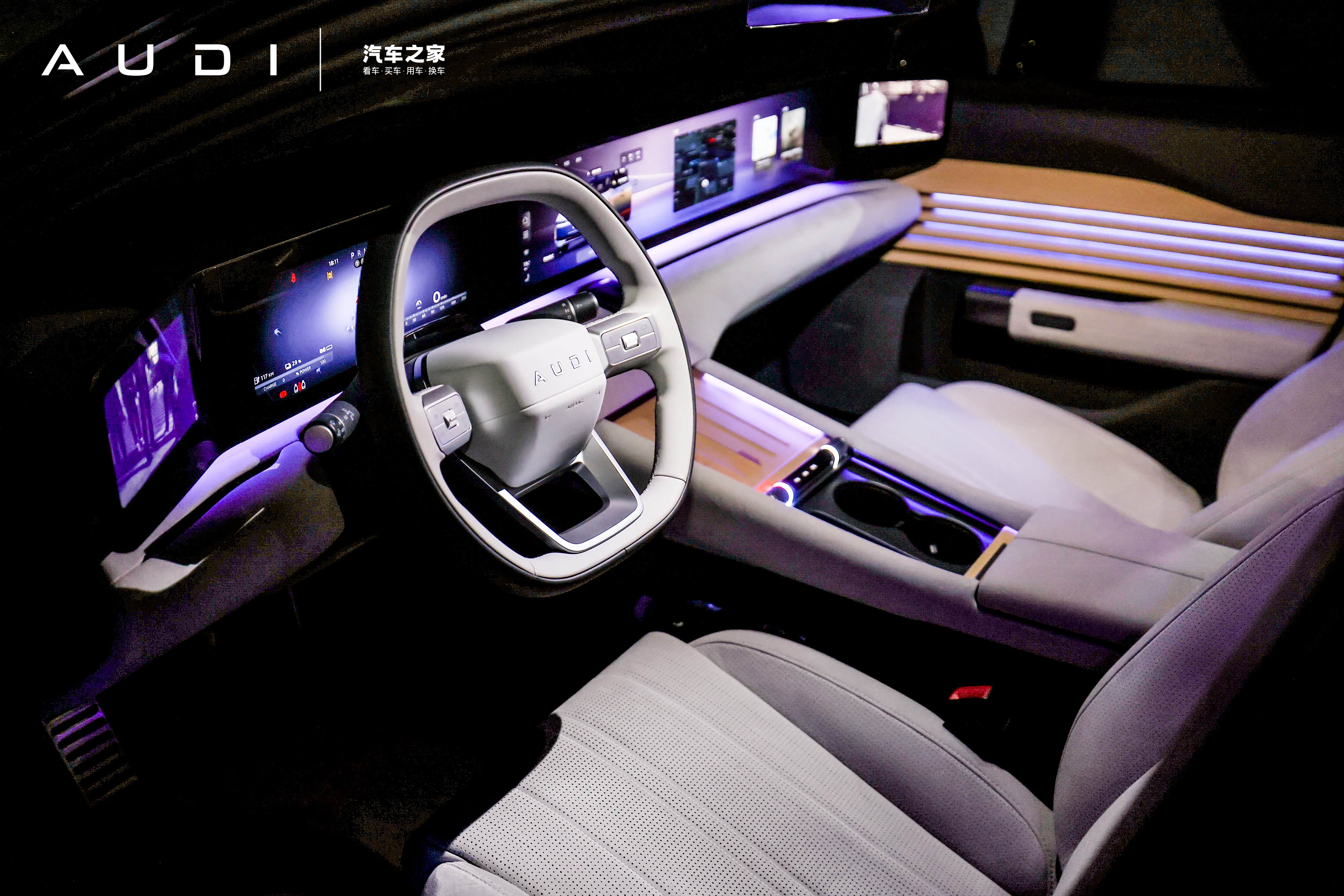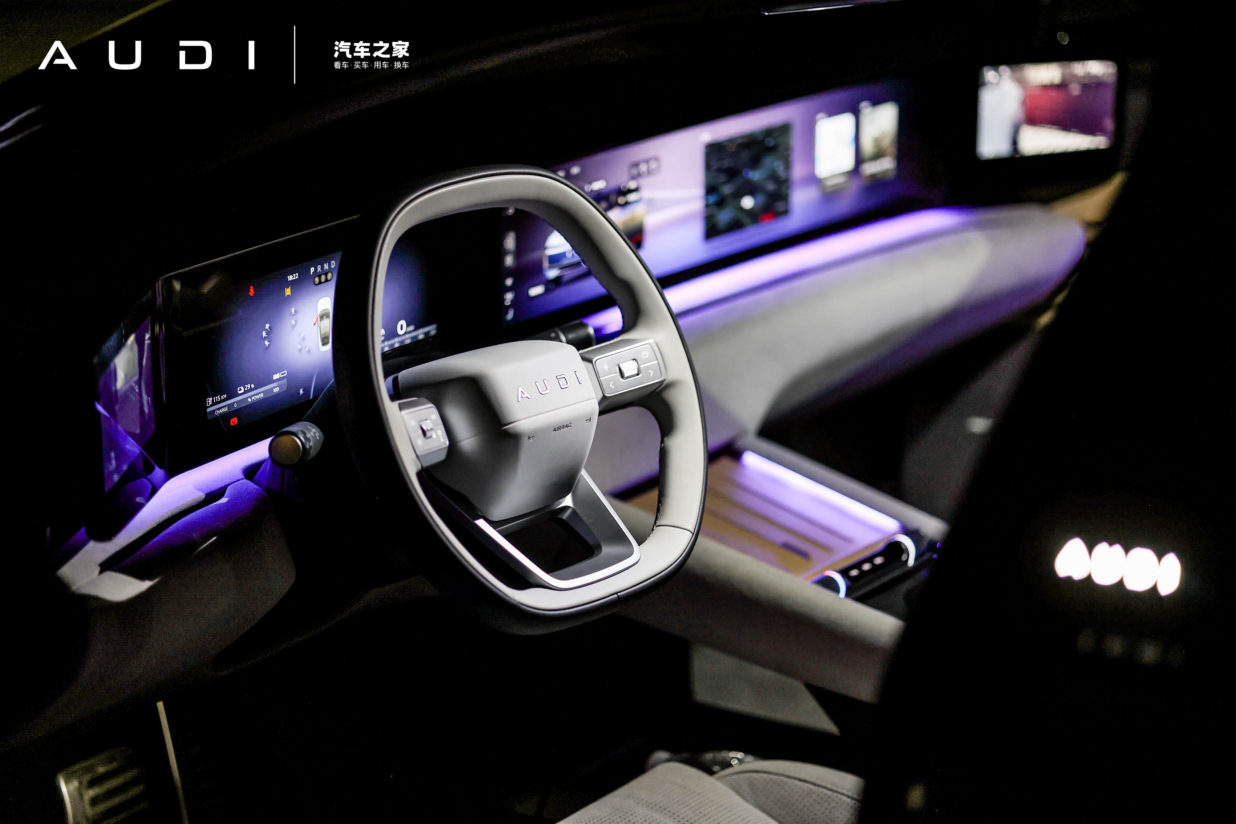 59英寸贯穿式超清广域屏,打造沉侵式8屏联动矩阵,奥迪智慧岛快捷交互功能, 4层30色渐层律动氛围灯与全景天幕相得益彰,让车内空间既通透又富有格调。