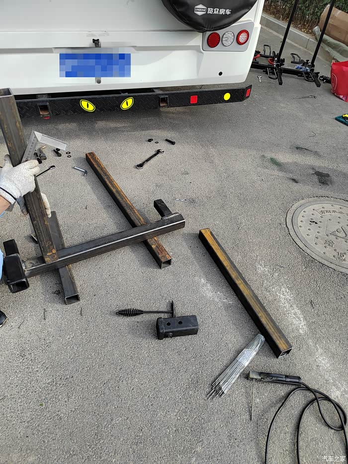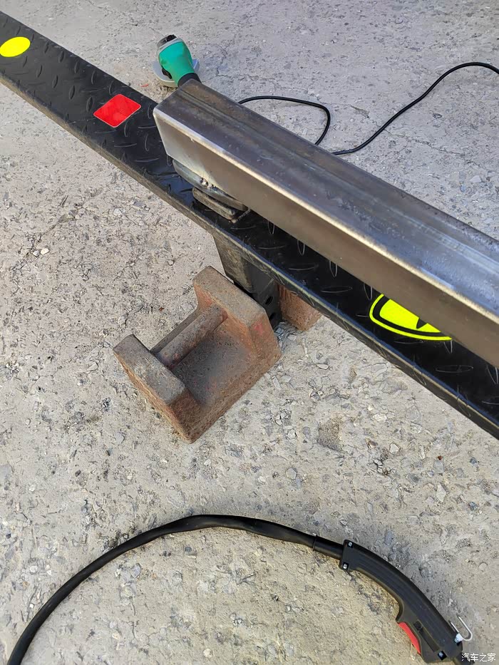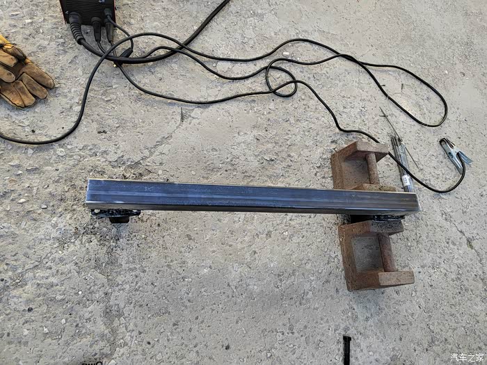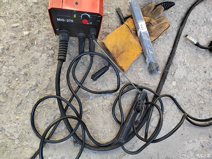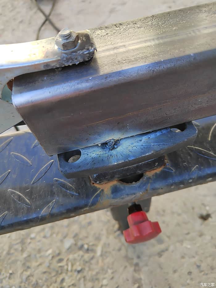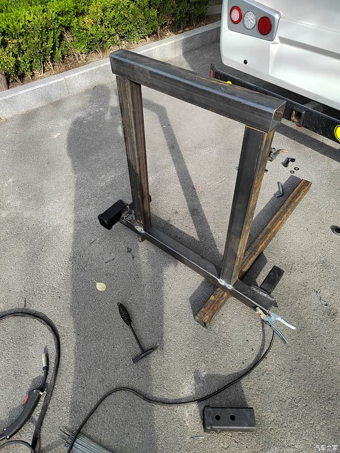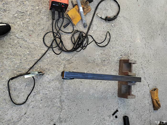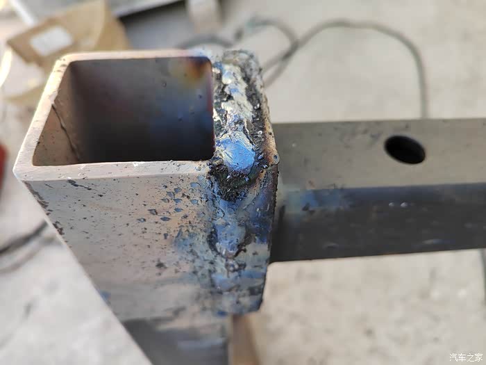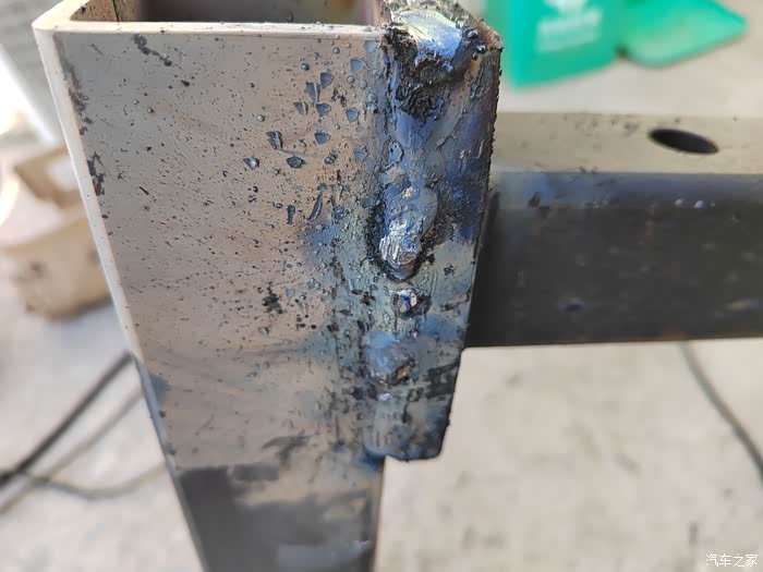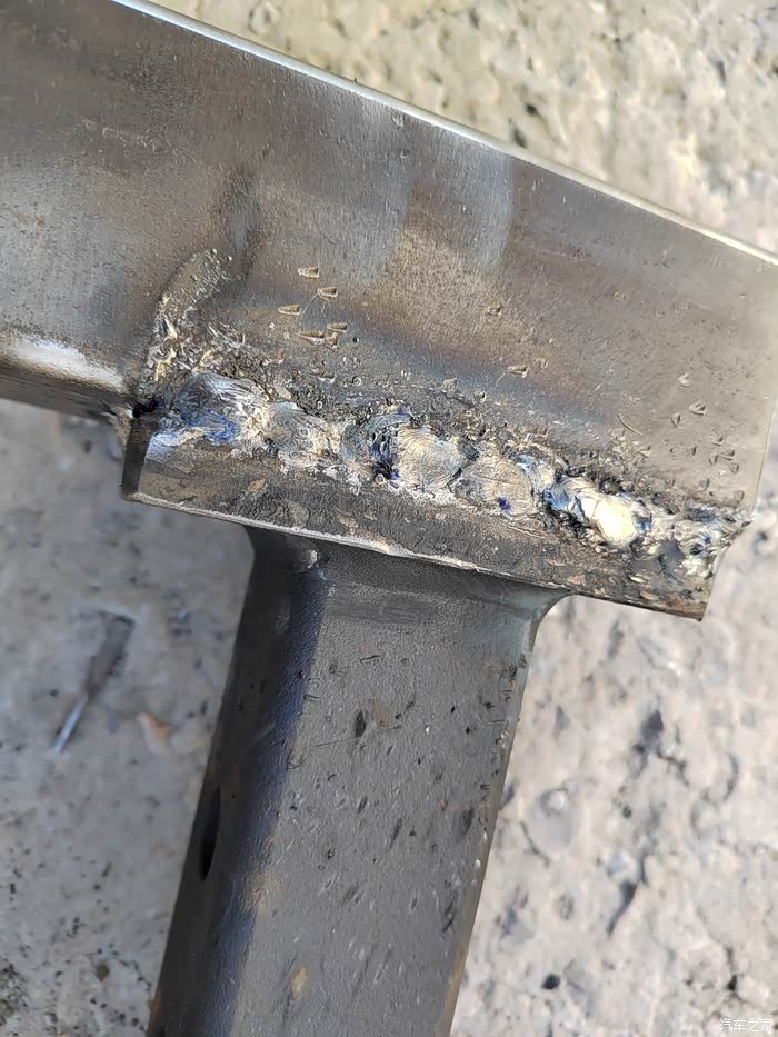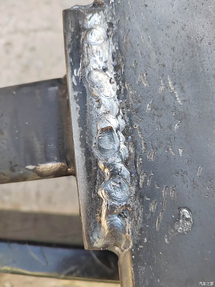 ),够黑的,于是让老爷子去钢材市场买吧,老爷子也非常喜欢鼓捣这些东西,于是去钢材市场买了回来,一整根6米,切成了三段,拉了回来,一根才不到300元,外径64mm,壁厚5-6mm的Q235钢材,也就是平时咱们拖车方口用的钢材,其他的材料基本都是网购的,由于还不怎么会使用电焊机,所以度娘一下,得知焊接这种钢材需要J422焊条,买了,又咨询了卖家如何接手焊模式,哈哈哈,等于初学了一遍,就开始动手了,开始的焊点惨不忍睹,不过没用几次,就能摸索出焊接出来鱼鳞纹的模样了。目前总体上比较成功,但是还有细节问题,后期有时间慢慢升级加固吧,好了,上图吧……