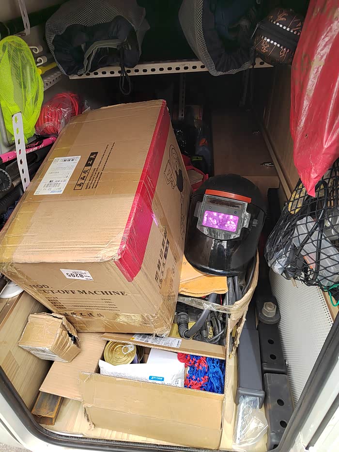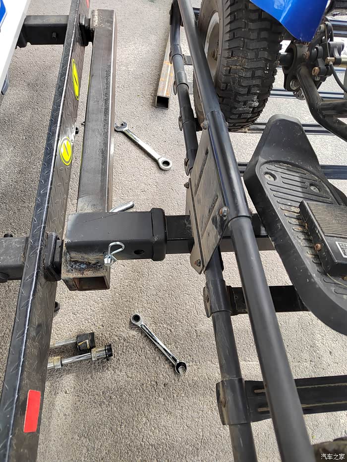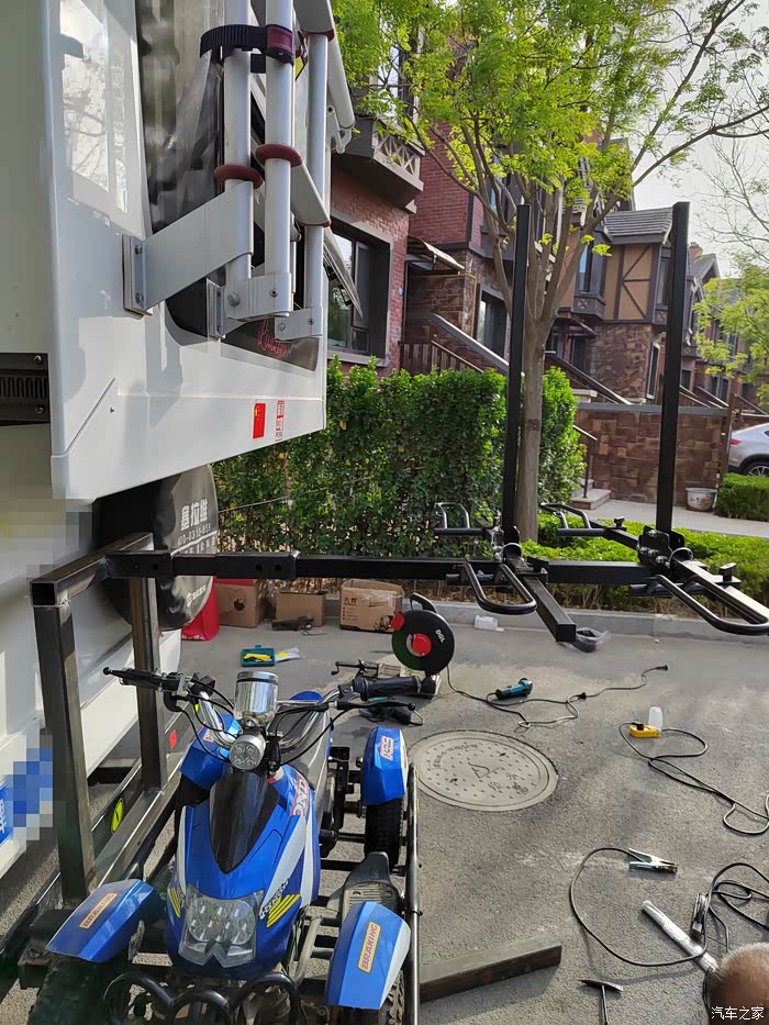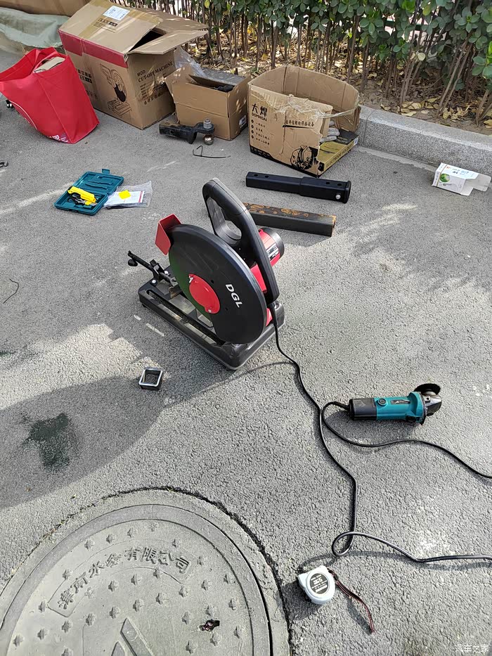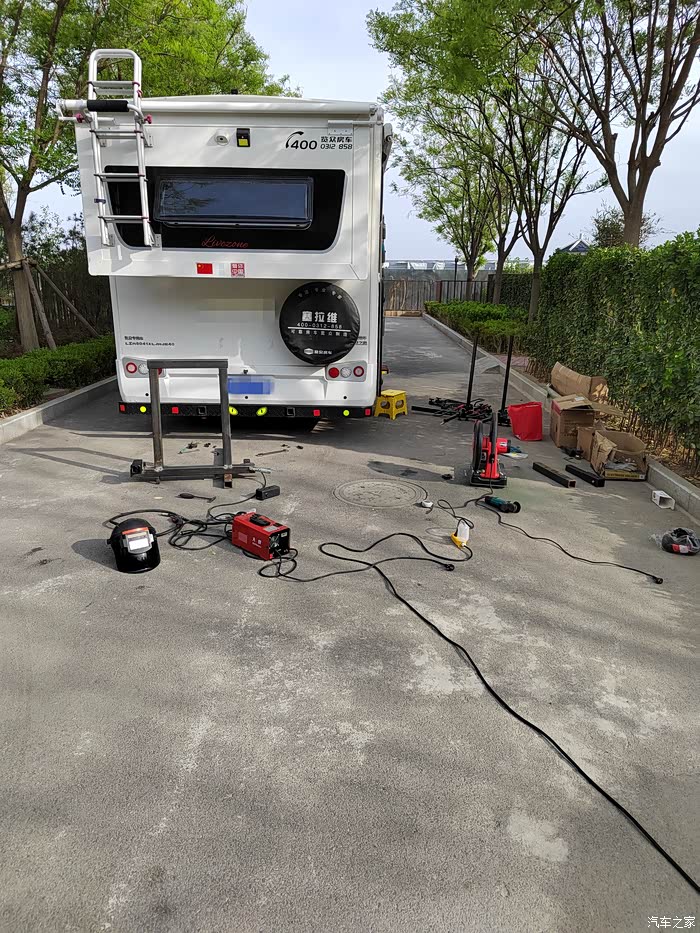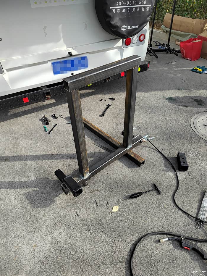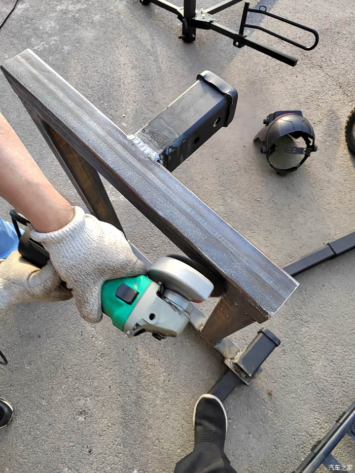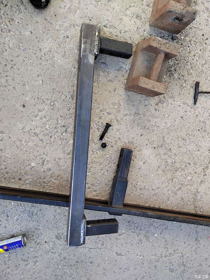 ),够黑的,于是让老爷子去钢材市场买吧,老爷子也非常喜欢鼓捣这些东西,于是去钢材市场买了回来,一整根6米,切成了三段,拉了回来,一根才不到300元,外径64mm,壁厚5-6mm的Q235钢材,也就是平时咱们拖车方口用的钢材,其他的材料基本都是网购的,由于还不怎么会使用电焊机,所以度娘一下,得知焊接这种钢材需要J422焊条,买了,又咨询了卖家如何接手焊模式,哈哈哈,等于初学了一遍,就开始动手了,开始的焊点惨不忍睹,不过没用几次,就能摸索出焊接出来鱼鳞纹的模样了。目前总体上比较成功,但是还有细节问题,后期有时间慢慢升级加固吧,好了,上图吧……