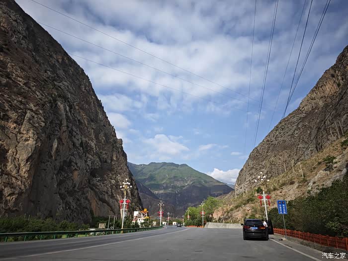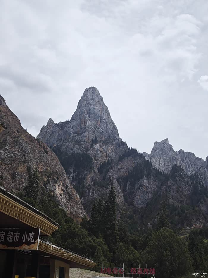 刚出舟曲县的城区,这里的山峰异常陡峭高大。可能我从小爱大山,看到这样的山总是很兴奋,媳妇儿却不这么觉得,她说她更喜欢平原,慢慢的被我带偏了,也喜欢上了这雪域高原。