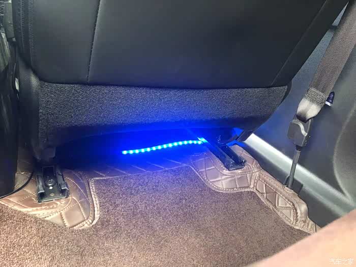 自己买了一个灯带,把全车改了氛围灯,三色可调的,注意改这个一定要买USB接口的,质量好一点的。因为夏天太热,之前买了一个接在保险盒上,有一天中午开车的时候线居然冒烟了,改装需谨慎,不能乱改。