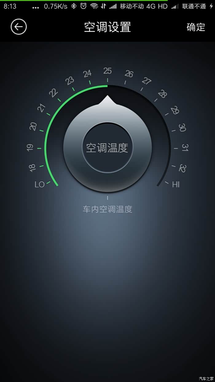 点击开启空调,出现温度设置界面,设置好温度