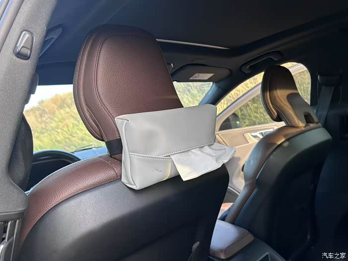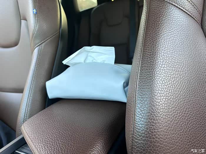 最后想请教车友们一个问题:我在沃尔沃商城买的皮质纸巾盒放哪儿合适?现在有两个选择:一个是绑在驾驶座头枕后面,后排乘客抽纸方便;另一个是放在中央扶手上,前排用着顺手。如果是接送领导,感觉放后排更显贴心?如果是家用的话,放扶手箱可能更实用?欢迎大家给点建议!