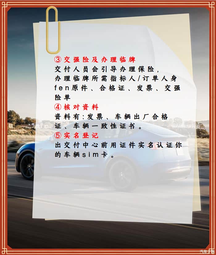 交付人员会引导办理保险,办理临牌所需指标人/订单人shenfen原件+合格证+发票+交强险单