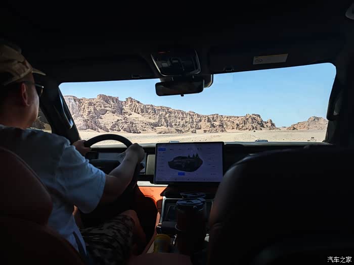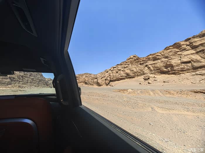 下午3点多的戈壁滩气温到达了50度,也是极石01在这次行程中遇到的第一次极端天气。好在车内空调制冷迅速,将燥热隔绝在外。