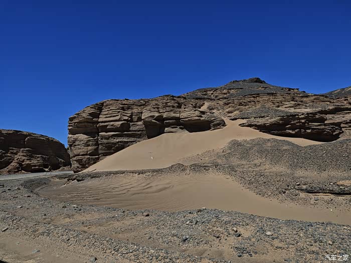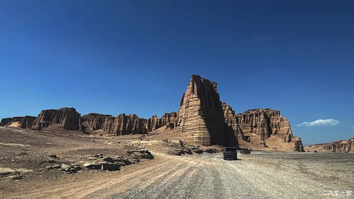 当车子缓缓驶入大海道,眼前的景象瞬间将我征服。连绵起伏的雅丹地貌,如同一座座古老的城堡错落林立,在阳光的炙烤下,散发着神秘而壮观的气息。过了红柳滩后极石 01 宽大的轮胎稳稳地碾过砂石路,车身的悬挂系统出色地过滤着颠簸,让我在这崎岖路况下也能尽享驾乘舒适。