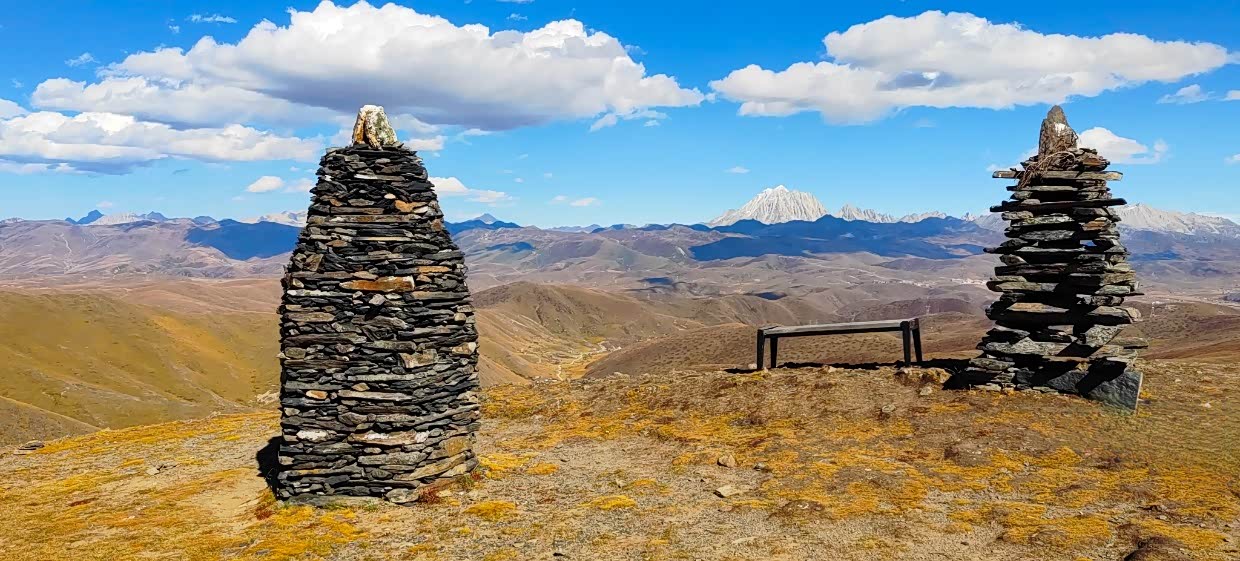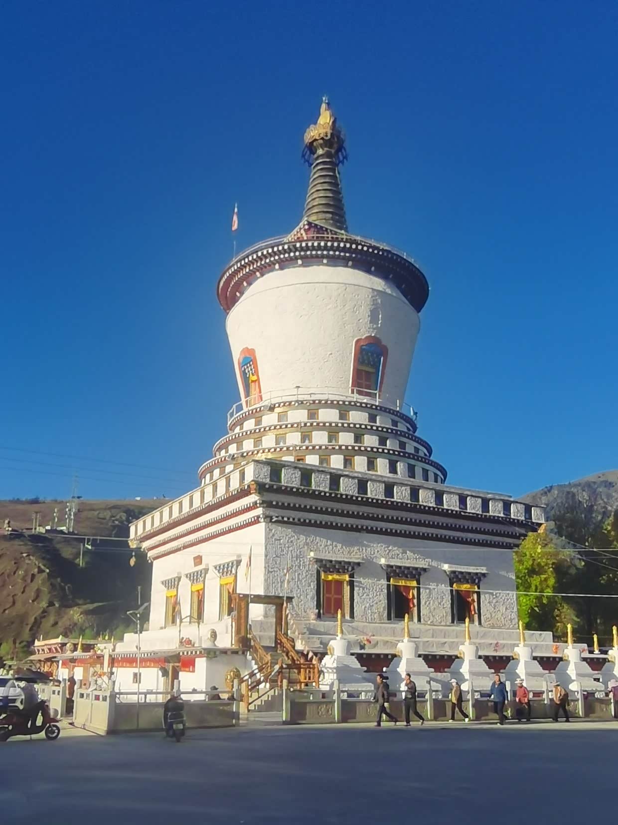 第五天,吃过早餐,八点多,我们先来到道孚尊胜白塔参观,然后去了道孚民居最具有代表的灵雀寺,出来就经墨石公园,灯笼草原,八美塔公来到姑弄村看雅拉雪山,然后驱车继续前行,来到八郎生都,看贡嘎群峰。