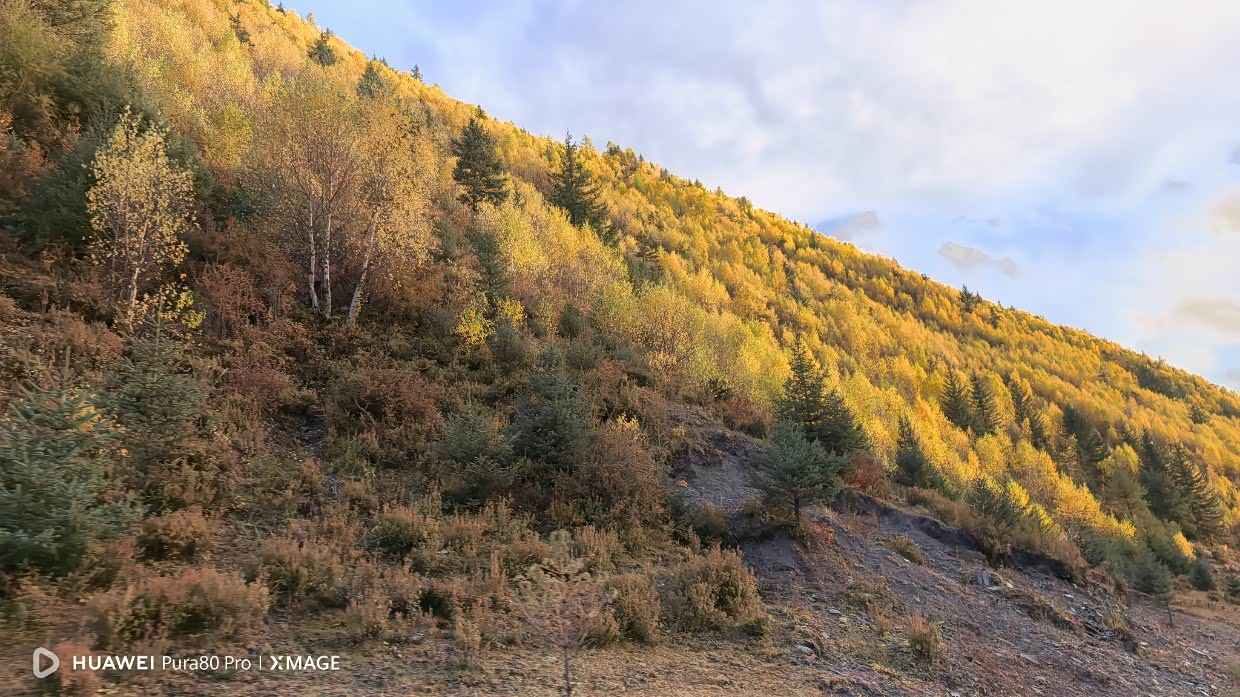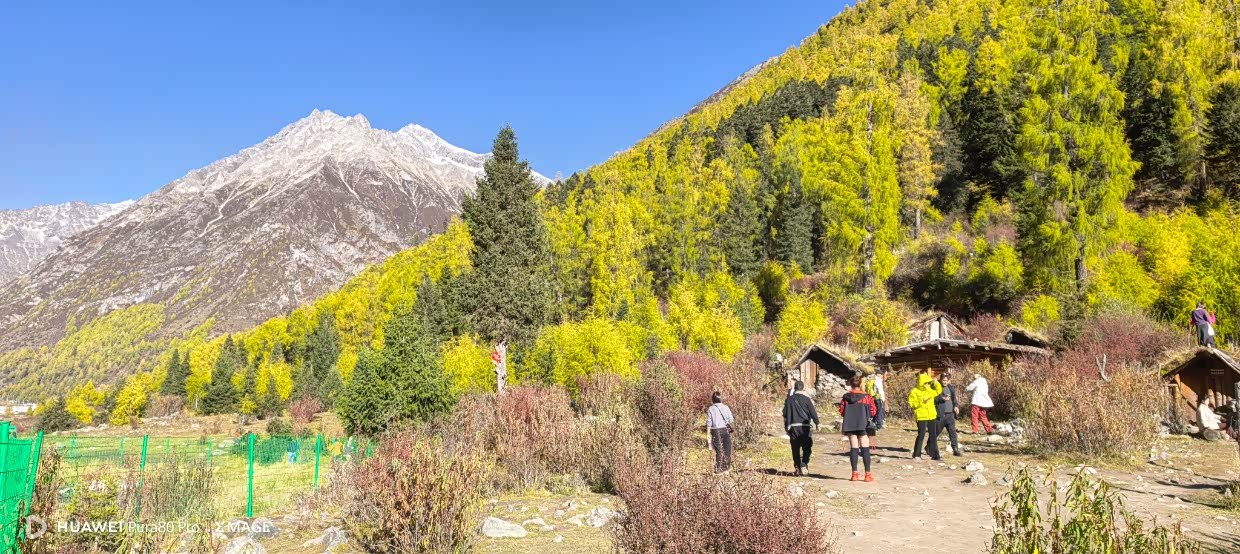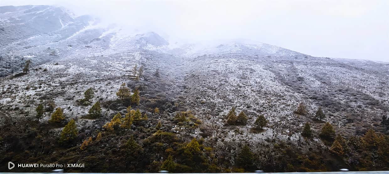 第二天,睡到自然醒,在酒店吃过早餐,八点出发,踏上川西彩林之旅的路程,一路美景,彩林时隐时现,受温度的影响,有的开始变色,有的还郁郁葱葱,走到半路,个别驴友提出要去汶川地震遗址看看,所以我们来回绕路花费了两个小时,为后边行程埋下了阴影,大约中午时分来到羊茸哈德,此时下起了小雨,天气阴沉,刚刚路过达古冰山还是晴空万里,要不是在路上花费两个小时的绕路,这里应该是秋天的美景,如果不下雨,羊茸哈德应该很美,这里是最美藏寨。由于天气原因大家简简单单转了转就赶往奶子沟米亚罗,一路小雨变成大雨,奶子沟彩林也没有变,时间稍微早了点。到翻越雅克夏雪山时,天色已经变黑,开始下小雪,然后中雪,我们冒着风雪与下午八点半到达米亚罗酒店,在酒店楼下吃过晚饭,就休息去了。注:川西我们已经去过多次,有的景点去过,所以这次就没有安排。