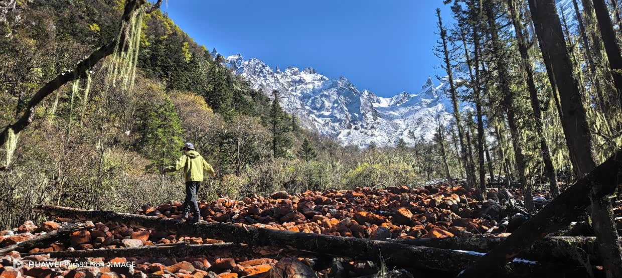 第三天:早晨在米亚罗街边吃过早点,八点出发,今天主要游玩是理小路,今年比较嗨的一条路,路过毕棚沟后就正式加入理小路地界,一开始就让人大吃一惊,笔直的道路前面一座雪山迎面扑来,很是震撼,让人耳目一新,精神倍增。整个理小路集彩林,瀑布,雪山,红石头为一体,景观的确不错。大二普,雷神王小木屋都不错。由于在理小路玩的很嗨,今天的另一个景点中路藏寨就没有时间去了,改到明天看看有没有时间去。
