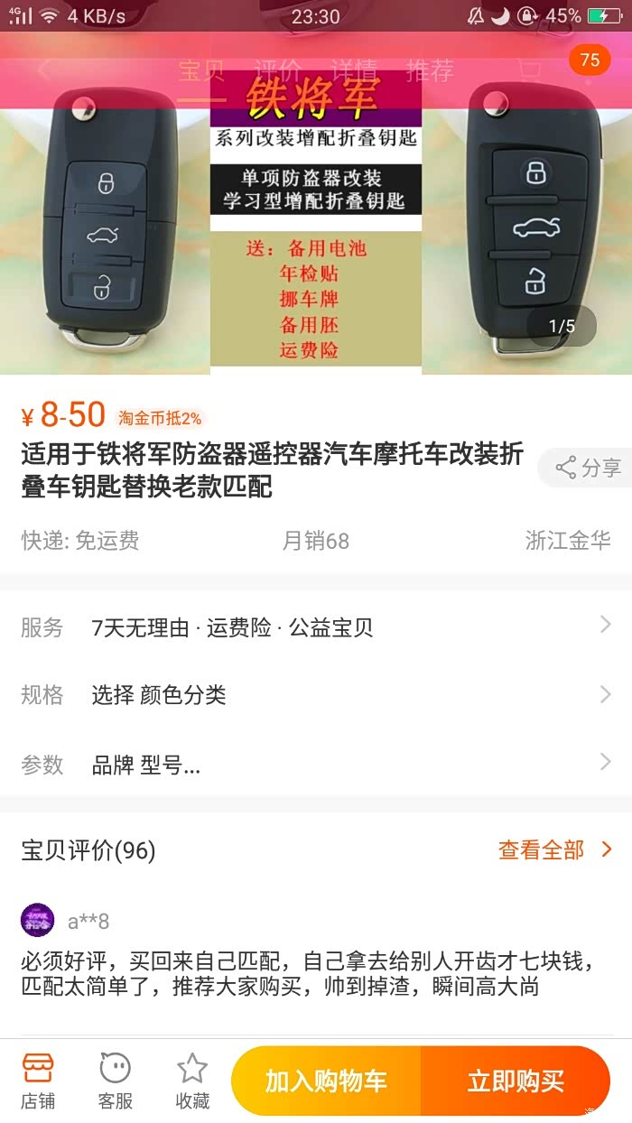 我原车钥匙按键穿孔了,买了两个钥匙外壳都一百块,还自己拆原钥匙芯片装到新钥匙壳里。