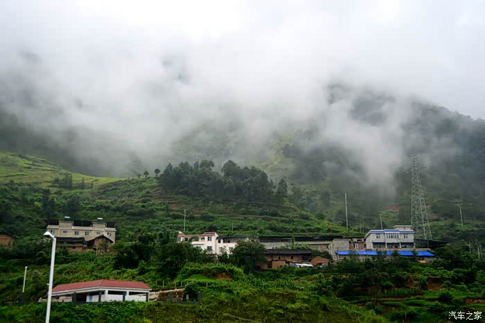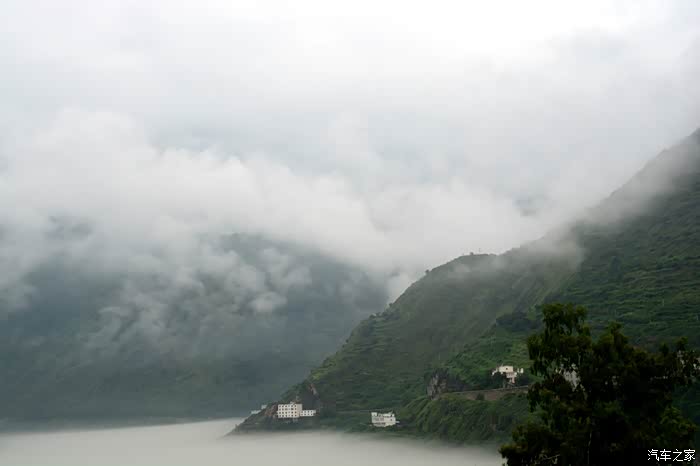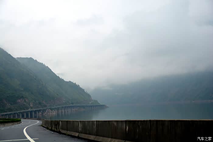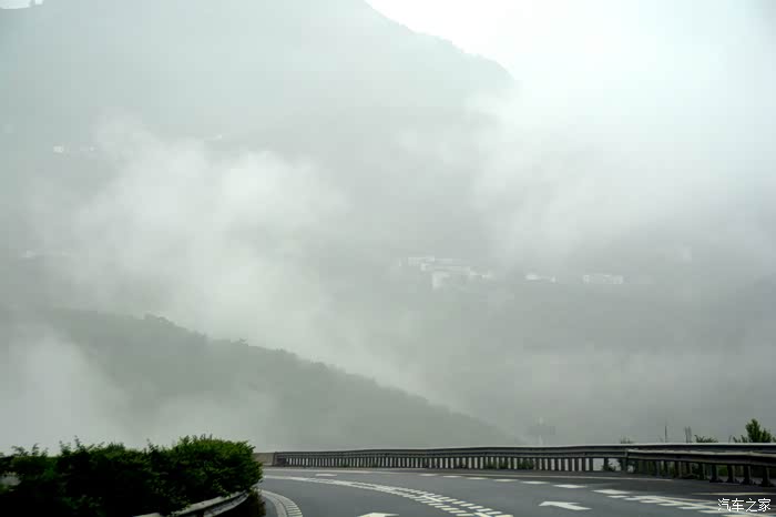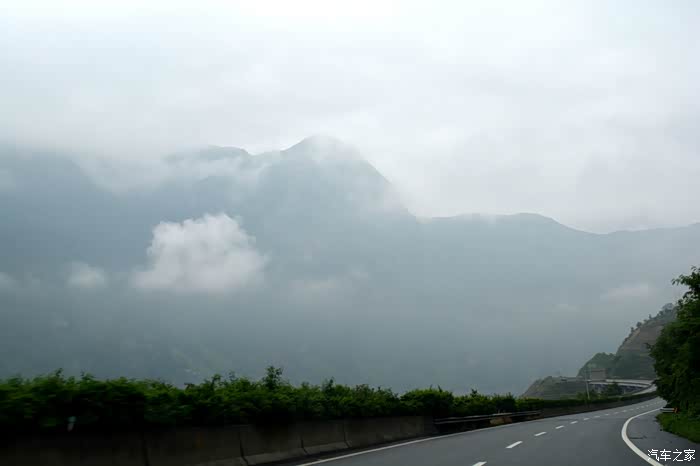 由于雅安至天全方向318正在修路,所以要绕行石棉,走211省道去泸定。时间还早,街上也没有卖早餐的,就决定先赶路,于是定好导航,从成都直接上成雅高速。由于阴天,外加还有雾,能见度很低,小雨还时下时停,所以开的也不快,到雅安也没做停留就直奔石棉,所以传说中雅安的三雅(雅女、雅鱼和雅雨)就只见到了雅雨。过了雅安,小雨渐渐停了,美景映入眼帘,青山绿水,雾气腾腾,高速公路在山谷中蜿蜒曲折地穿行,如入仙境一般,儿子拿着相机拍个不停,后来发现都是在行车的过程中拍的,效果很是一般,留下了不少遗憾。
