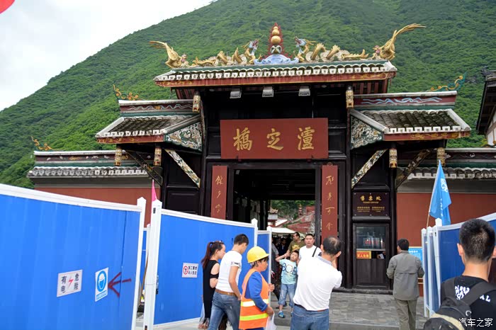 到石棉下了高速,走211去泸定,路面是不错,可是路窄坡多弯急,一边是山,一边临江,开车需要十二分的小心。在省道上可以走走停停欣赏美景了。中午到了泸定县城,转了几圈才找到停车的地方,吃了午饭准备去泸定桥看看,可又下起了雨,于是在门口拍了几张照片赶紧走人。