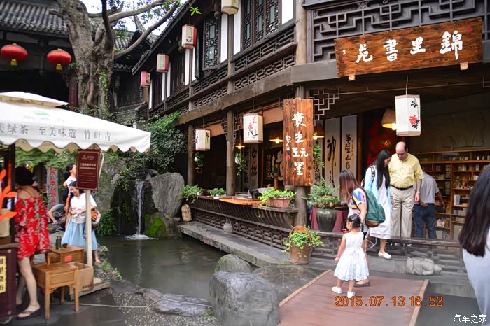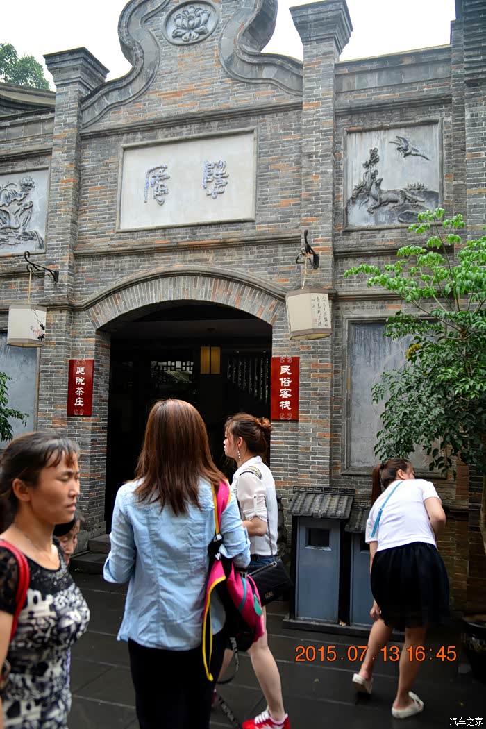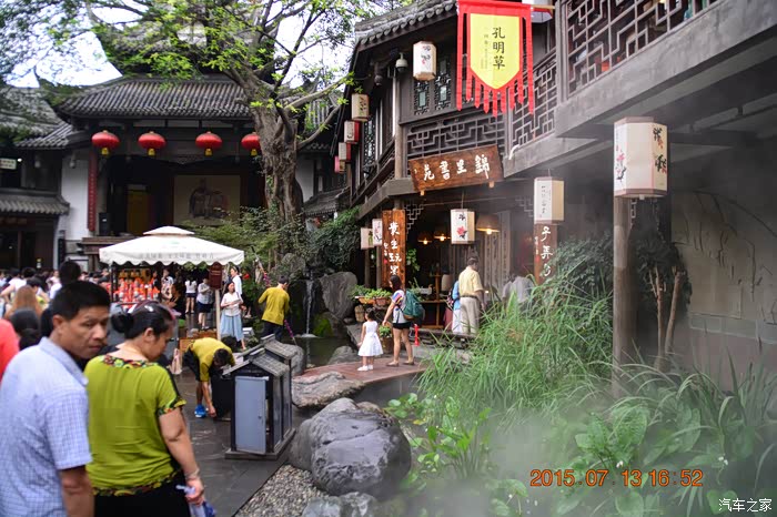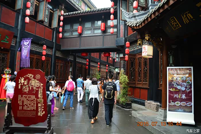 一路高速,于下午两点左右到达成都市区,天下着小雨,赶紧找好宾馆,把行李安顿好,找了个停车场,讨价还价,到第二天早上5点开走,费用30元。然后到路边小店吃了午饭,直奔锦里而去。