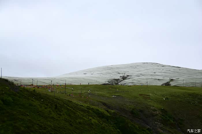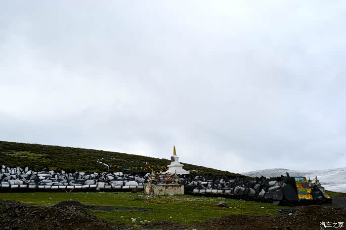 过了新都桥没多远就要翻越高尔寺山,山路实在是烂,只能一、二档慢慢爬行,别人都是SUV、四驱,那是见咱就超,咱小三一点办法都没有。到了山顶看到远处白茫茫一片,不知道是下的雪还是霜,把车停在路边准备拍照,一个藏民就开车到我车旁,用不怀好意的目光瞪着我,吓得我赶紧发动车子走人。后来想想可能是收费的(在后来的观景台都遇见过收费的)。
