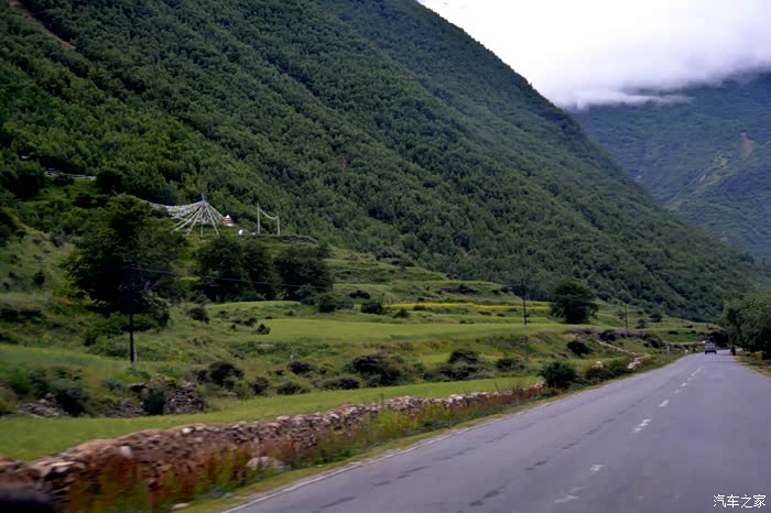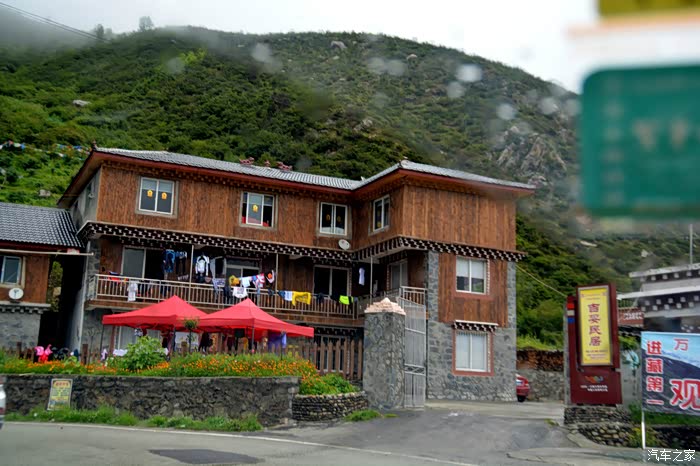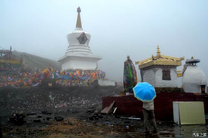 一路伴随着小雨来到了康定,一路寻找山坡上“康定情歌”四个字也没见到(后来在整理照片的时候看到一张照片无意中拍的好像是“康定情歌”,由于太远看不太清)。由于出了康定有几公里在修路,所以就把这次小三西行的第一托给了康定,好在小三还够坚强。虽然在翻越折多山时显得动力不足,但小排量的车能有这样的排量也知足了。
