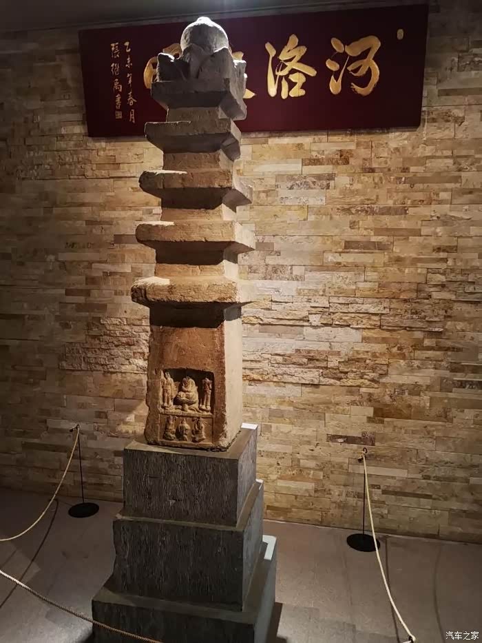 还记得我在去山东博物馆的时候说过,国人的素质真正提高的最佳表现就是去任何一个地方旅游,必先参观博物馆,只有深刻了解了当地的文化艺术以及历史以后,才会对这个地方有着更为深刻的了解,而不是走马观花只留下照片而已。所以这次龙门石窟之行,当我们走下摆渡车的时候,龙门石窟的大门前就是龙门博物馆,既然如此,必须先去看看,了解一下这里的文化内涵。而其实,首先进入这里还有别的目的,说这些可能就会让您觉得我不是一个素质高的人了,哈哈。另外有两个原因。其一就是龙门石窟游览是单程线路,不走回头路,所以必须先去博物馆;其二呢,就是摆渡车是露天的,太冷了,近博物馆让老人先暖和暖和也好啊。当然,最主要的还是想看看文化底蕴。进入博物馆,就立刻感觉到了不虚此行,里面有太多的珍品,这些都是走马观花看外面那些石刻所欣赏不到的。比如说那些小巧的头部石雕,比台球还小,却栩栩如生,就连眉毛和表情都看得一清二楚,而且还是北魏年间的,这在外面可是看不到的。还有那些各种各样各个朝代的石雕陶瓷,都是珍品啊,这些东西,居然让我入了迷,留恋了将近两个小时。而博物馆在内部分为三层,层层有不同,最外面的造型也是十分独特,椭圆形的外墙中还包裹着一个小小的水池,几条锦鲤在悠闲的游荡着。所以,如果真按照游览顺序的话,您也应该先来博物馆看一看。