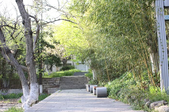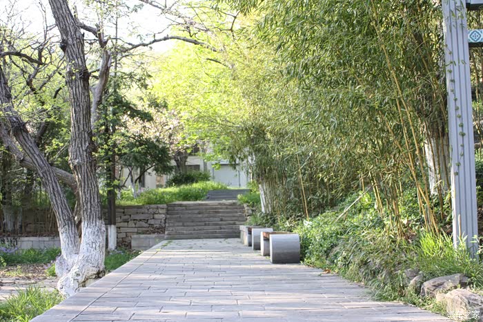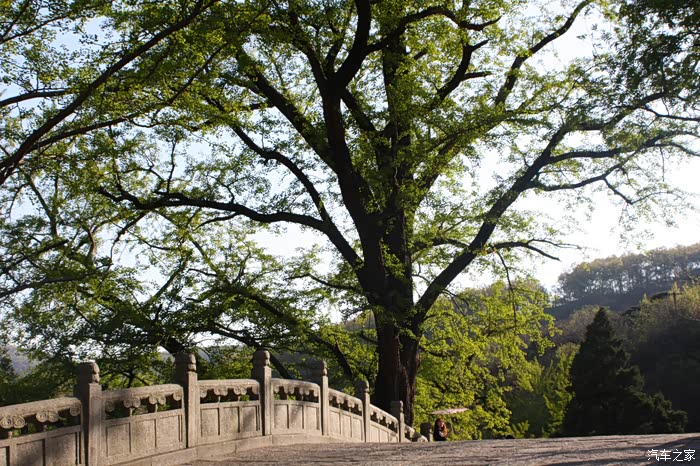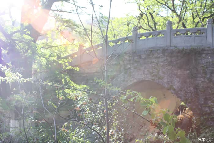 一处景点让游人印象深刻就需要有韵味,这韵味可以是引人入胜的自然风光,这韵味可以是古色古香的建筑,这韵味也可以是生动和谐的人文气息等等不一而足。这韵味会引起游人的驻足欣赏、思考与回味,会在脑海里留下印记。有了好的印象就会去宣传,起到广而告之的作用。在花果山最让我流连的非这座石桥莫属,它是一座石拱桥,尽管上面铺着大块的条石,两边修葺着石栏杆,样子非常古朴典雅,不过这也难以掩盖它现代修建的事实。倘若这是一座古老的石桥再加上桥边的这一棵老银杏树,那就更好了。