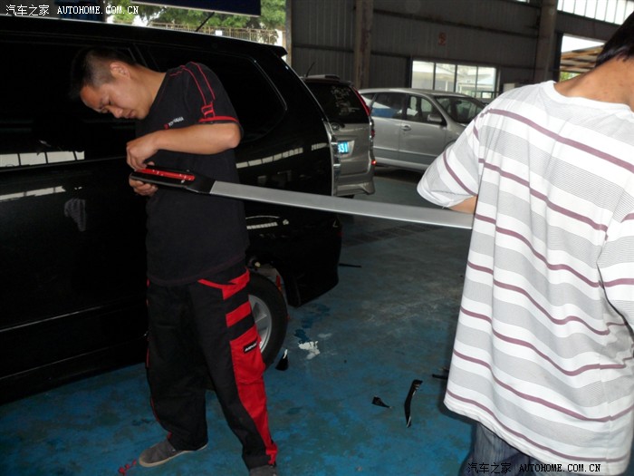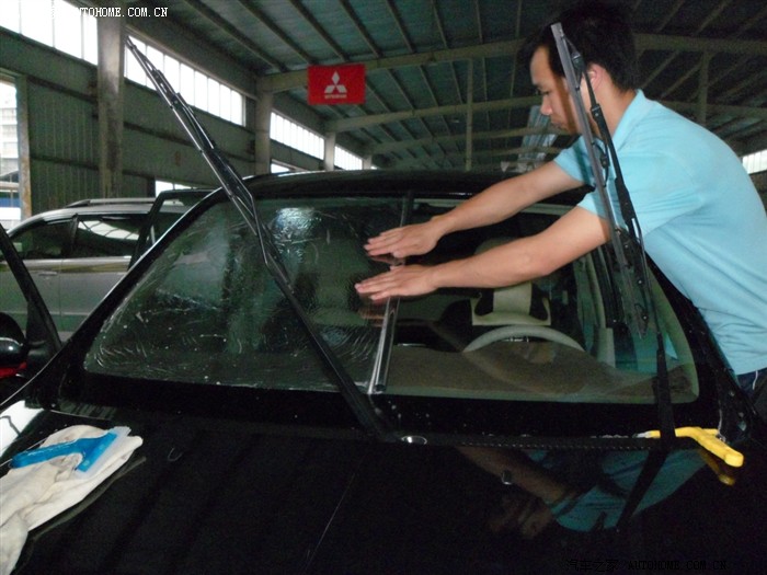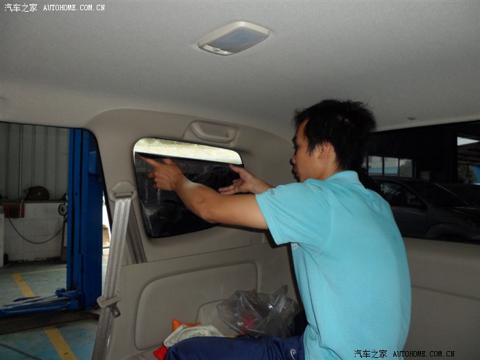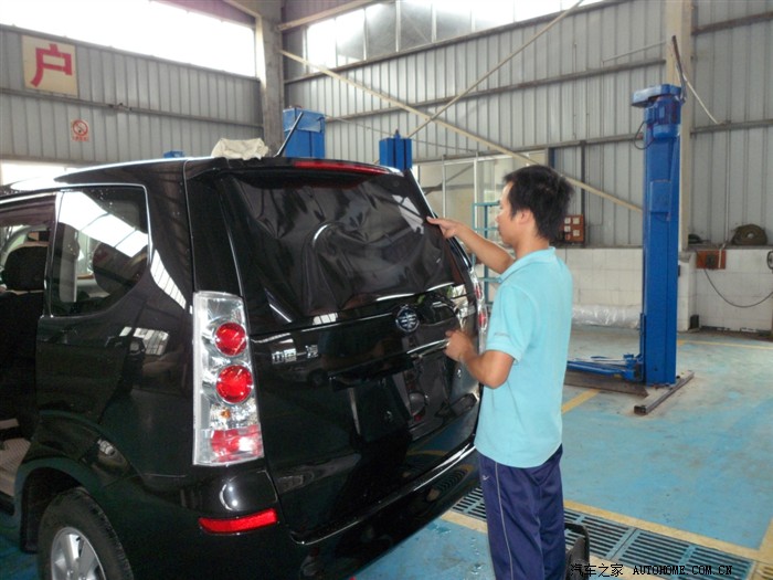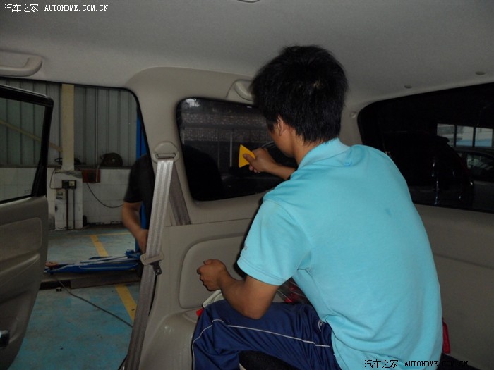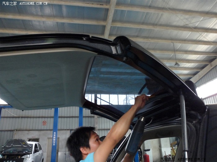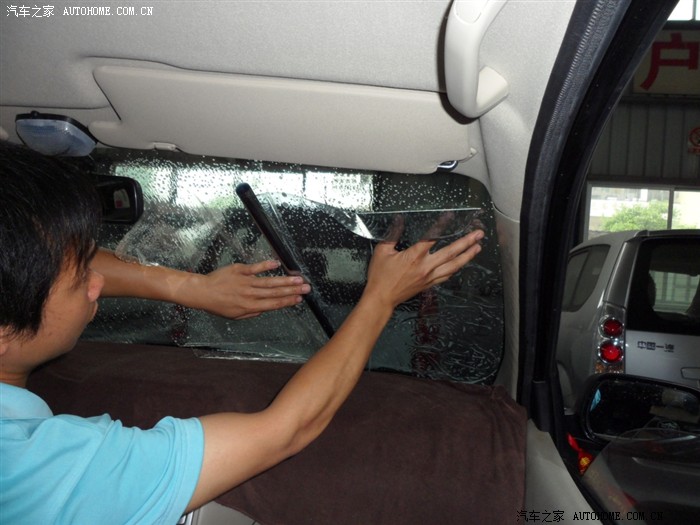 先贴后档,因为后档幅度过大,所以先把膜定型,再才剪裁,最后移到车内玻璃上面贴。