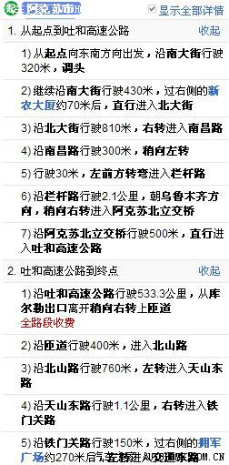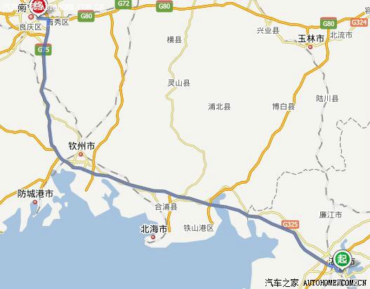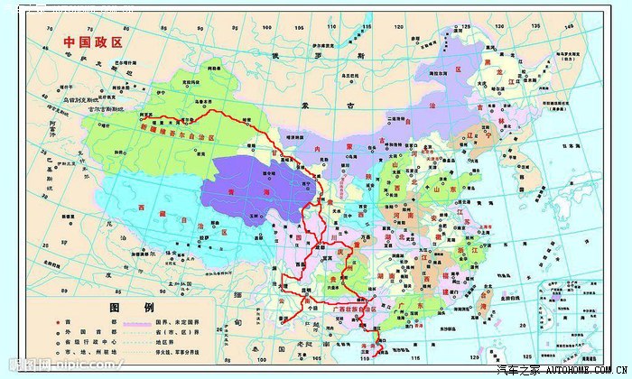 实际行程路线:阿克苏-G3012-库尔勒-G30-瓜洲-G30-兰州-G213(国道)-若尔盖-G213S301-九寨沟-S301G213-汶川-S9(高速)-成都-G42G93-重庆-G75-贵阳-G76-三江-G209(国道)-柳州-G72-桂林-S43(高速)G75-北海-G75G15-徐闻(海安港)-(轮渡)-海口港-G98-三亚-G98-海口-(轮渡)-徐闻-G15-湛江-G75-南宁-G72-柳州-G72G80-石林-G78-昆明-G8511-玉溪-G8511-野象谷(版纳)-景洪-G8511-大理-G5611-丽江-S308(省道)-攀枝花-G5-西昌-G5G75-陇南-G212(国道)-兰州-G30-哈密-G3012-库尔勒-G3012-阿克苏