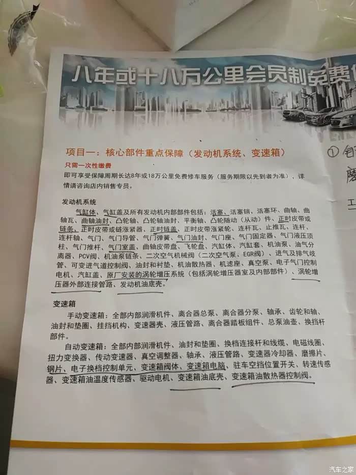 后经朋友推荐,花了999元购买了一份整车范围的保修服务,一年一办,不限制保养地点,去修理厂也可以(但是要在保养手册中留记录)全国各地都可以理赔,很方便。