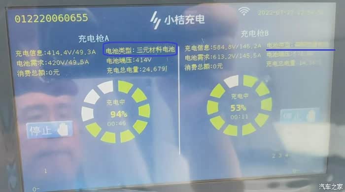 某天充电时,电桩显示是三元锂电,旁边充电的货车显示是磷酸铁锂