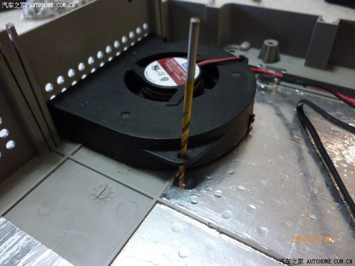 转战最关键部分,先安装风机,我采用手提电脑上的,大小正好,先用钻头打个印子