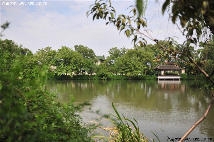 个园游览不虚此行, 唯一的遗憾就是目前的公园管理者没有象古代的设计者考虑那么周全, 我们好不容易走回原来进园的地方, 却得知那门出于管理原因只能进不能出, 这时候女儿比较累了, 我只好扛着近40斤的女儿绕了一大圈从另外的门出了个园返回购票处旁边停车场取车, 当返回停车场途中路过许多土特产专卖店, 我突然明白了公园管理者为何让游人舍近求远绕行的用意, 回到停车场取车离开时, 看见一位扬州帅哥带着他的古英国牧羊犬在骑车锻炼.