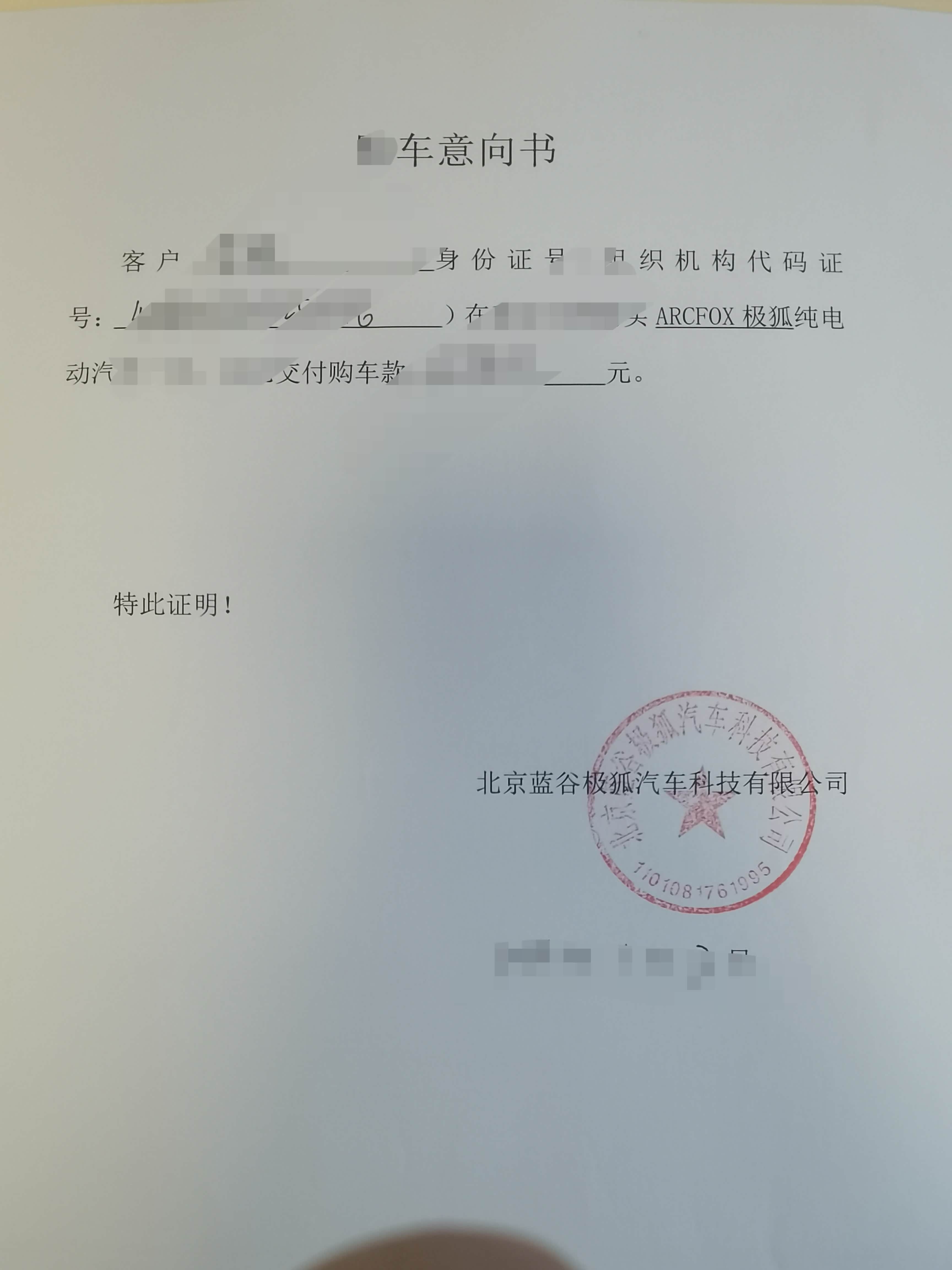 文件3:购车意向协议或发票(购车发票或者购车协议等)