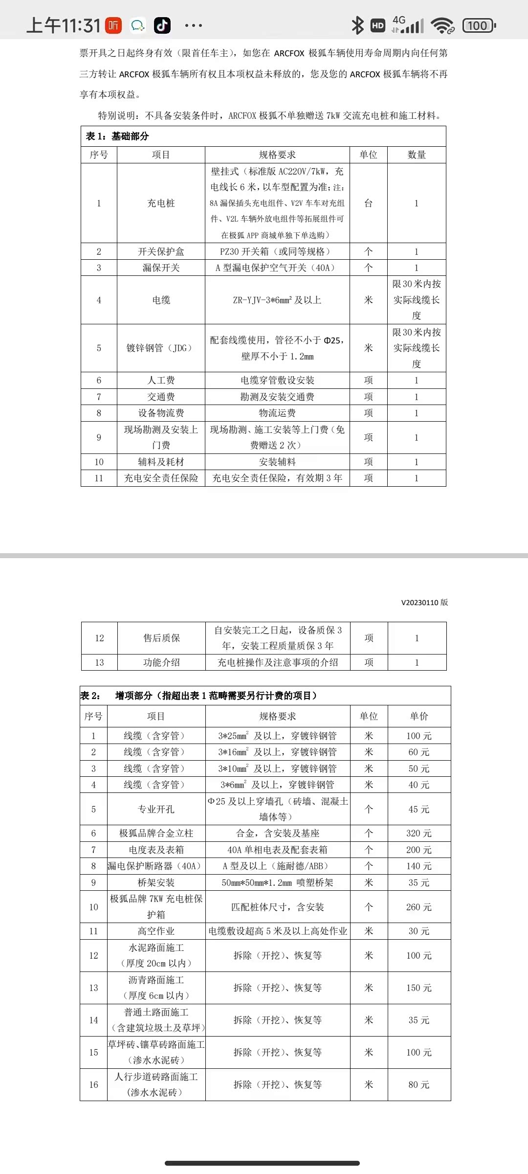 2、专属服务:极狐的专属安装服务人员会与你进行联系,给你一个安装权益文件看下(30m内免费安装,超出的费用明细)