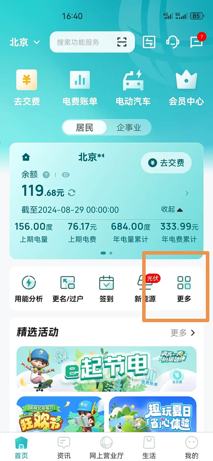 网上预约需要下载个国家电网APP,然后可以在手机上进行预约安装操作:在国网app首页,点击【更多】,在办理栏目中选择【新装】,然后选择【个人充电桩接电】,【选择所在地区】,点击【开始办理】,按照页面索引提交相关材料和个人信息后,点击【提交】即可进入审核环节。