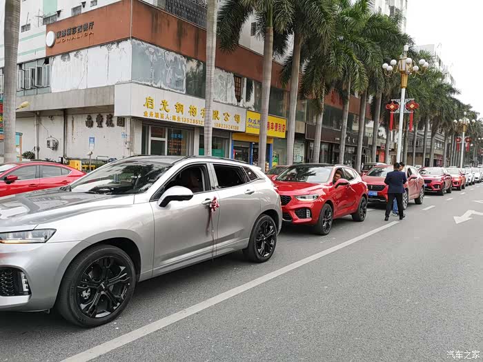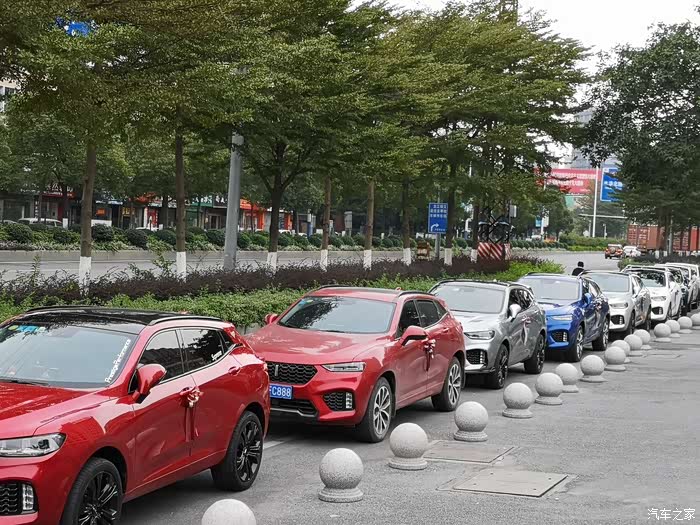 2018年12月28日是个喜庆日子,是车友的一对新人结婚佳日。原本计划今天去朋友那里搞一个Parte的,车友群闪烁了一条管理发布的婚车征集公告,需求多辆不限颜色的WEY车队,相关成员很快为群里车友组建一支婚车队伍,所以最后选择了放弃去朋友那里的Parte,就让爱车VV7去沾沾喜气,于是第一时间联系负责这次婚车的管理员报名。今天是周五上班日,仍然很快很多热心车友前来报名助力新人,为了能顺利找够WEY辆车,管理员也是提前了一月发布婚车公告,让大家能帮下忙,大家能从陌生中集在一个集体里,一起相聚成为车友、朋友、兄弟,不容易啊!所以车友们都是非常支持的,最终有一辆保时捷做主婚车,多辆WEY婚车诞生了。