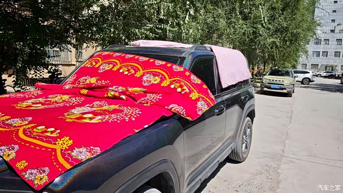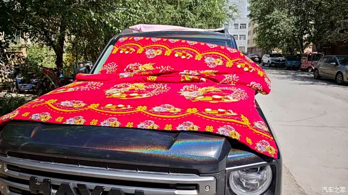 这么热的天,真的是到处找凉快的地方,今天也是突然想起来家里的被子真的好久没有晒过了,但是以前家里有院子都有晾衣绳,现在住楼房了被子都不知道在哪里晒的好,在楼下看了一大圈发现真的就车顶干净一点,最后决定在车顶晒被子了,虽然我们的猛龙是一个紧凑类型的SUV,但是相对卧车来说还是很大的,2个被子真的轻松应对了。