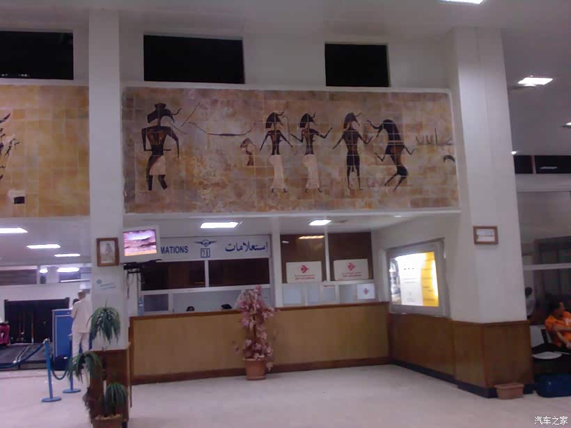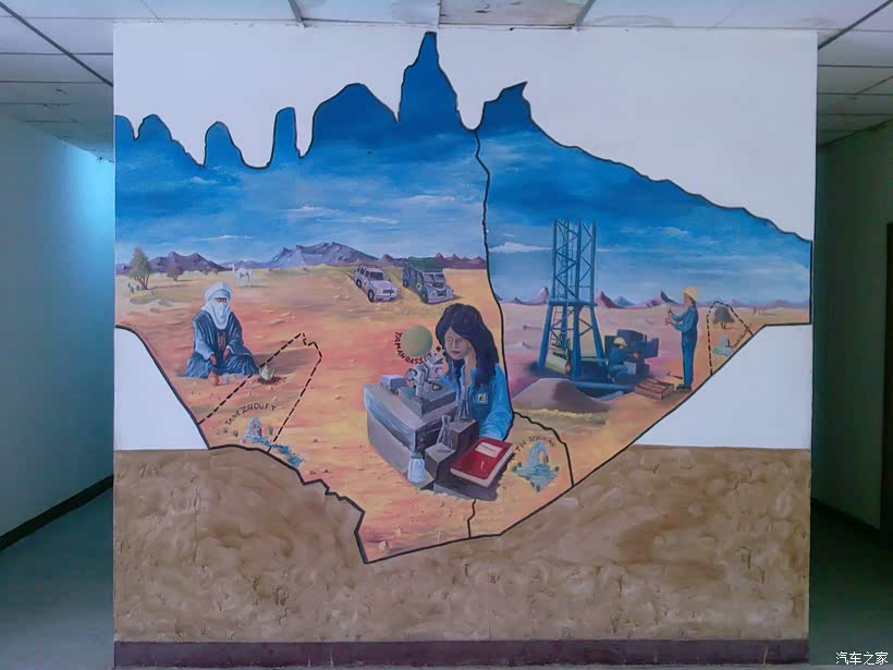 塔曼拉塞特机场墙上贴着沙漠岩画的复制版瓷砖