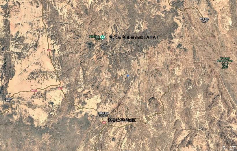 地图网站上找到Tamanrasset的标志性山峰俯视图