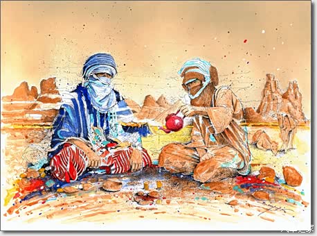 塔曼拉塞特沙漠风情画,图阿雷格人在沙漠里煮茶的场景
