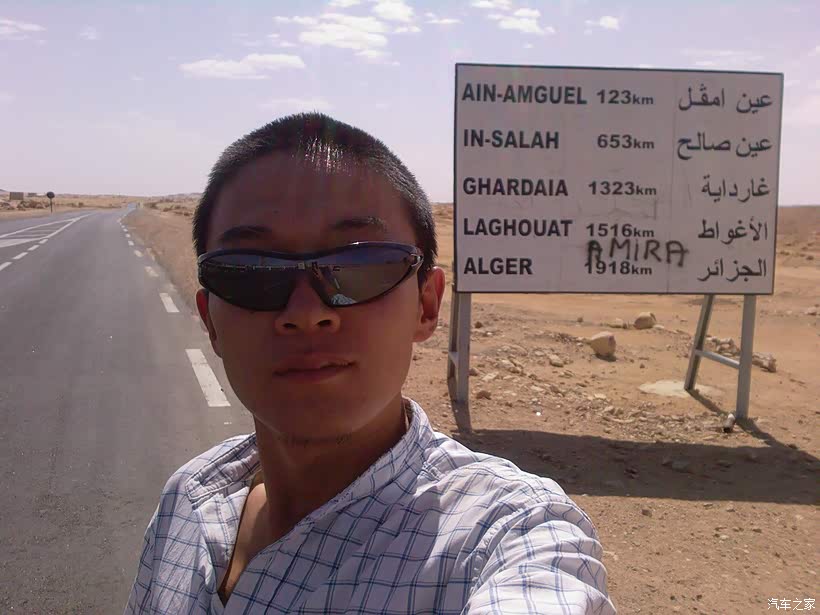 去机场方向路边的标识,离首都阿尔及尔(ALGER)1918公里