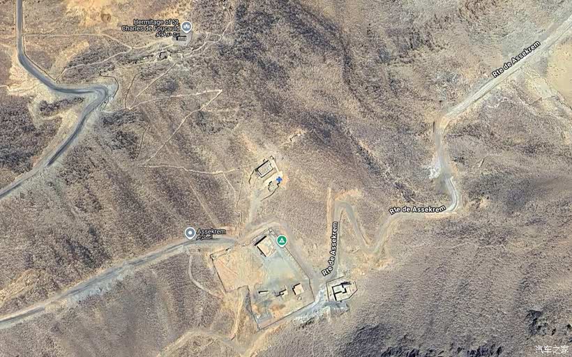 截图上方形的围墙内是ASSEKREM景区唯一的小旅店