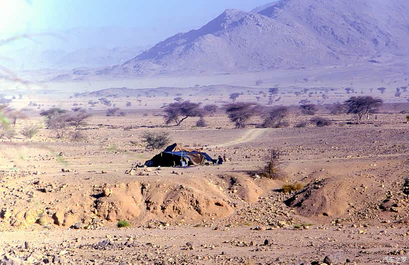 我住的地方在省城Sersouf街边,城里除了几棵年头久远的粗壮古树,便是些人工栽种的耐旱矮树,那点可怜的绿色,还总被四处觅食的山羊啃得七零八落。不远处的山峦光秃秃的,裹着混着沙砾的泥土,与天地间的黄褐色融为一体。城里最高的建筑,是清真寺那座尖峭的宣礼塔,其余多是一两层的厚实矮房,墙面刷着清一色的黄褐色涂料,与周遭沙土石山浑然一体。正午的阳光近乎沸腾,晒得泥沙又干又烫;一旦起风,便是沙飞泥走;若是遇上稍大的沙尘暴,整座城都会陷入混沌,连密闭的屋子里都飘着呛人的尘土味。