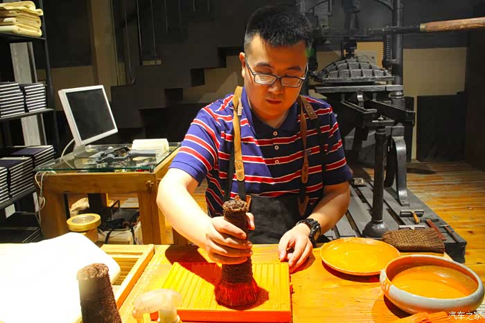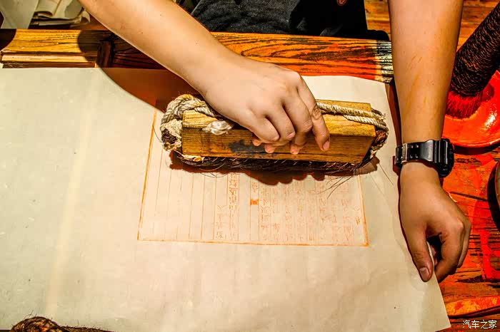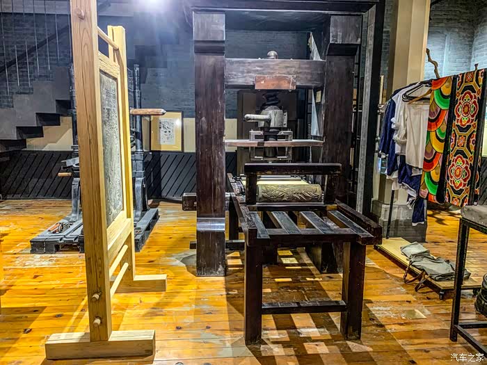 在书店内其中一个区域里,我们还看到了早期国外参考咱们的活字印刷术造的印刷机,还体验了雕版印刷。