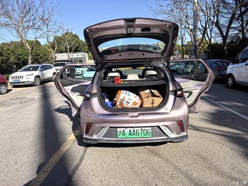 作为一款家用代步车,海豚的空间表现也超出了我的预期。虽然车长不是很长,但轴距不算很短远超这个级别的,这个轴距在小型车里绝对是顶级水平。前排空间不用说,我175cm的身高,调整好座椅后,头部还有一拳多的余量,腿部空间也很充裕。后排坐三个成年人虽然不算宽敞,但日常带家人出行完全够用,腿部不会觉得拥挤。后备箱常规容积也挺大的,平时放两个行李箱没问题,要是把后排座椅放倒可以放很多东西,我上次搬家的时候,装了不少杂物,完全没压力实用性拉满。