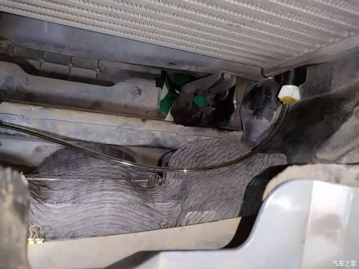我动手能力不是太强就想找个简单办法过滤油气。发现中冷器右下角有个放油阀以前打开过放出来一点油。