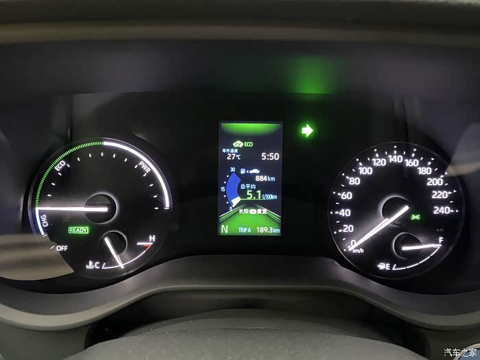 一般启动后中低速(50甚至60km/h)段只要油门踩得比较佛系,几乎都可以纯电运行,这个时候非常安静,舒服得很。如果需要稍微快一点的提速,或者遇到上坡什么的,发动机就较快介入,根据动力需求,或者纯油或者油+电方式输出动力,通过仪表盘中间的小屏幕可以很清楚的看到动力输出来源。
