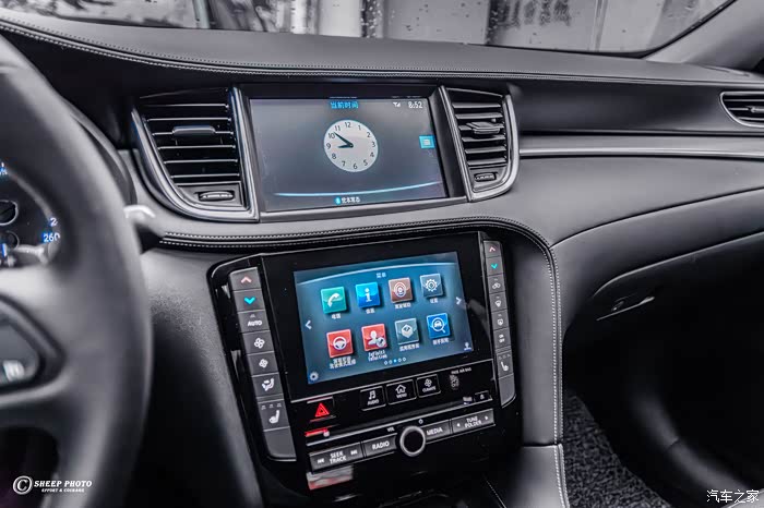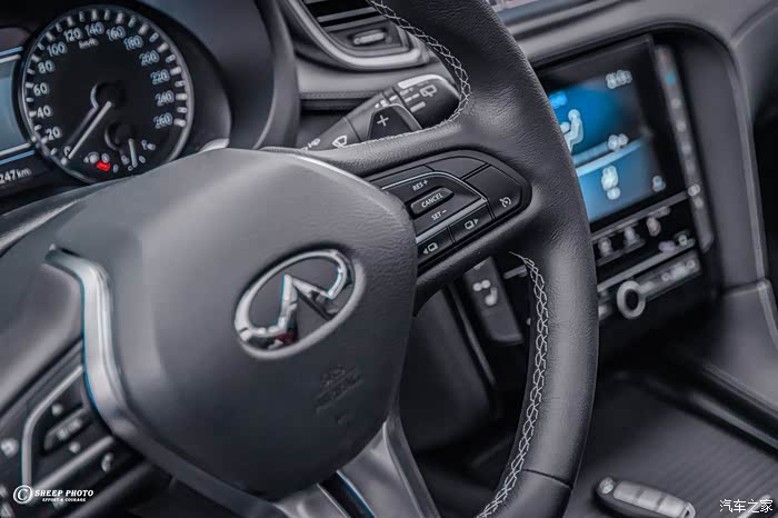 进入车内,英菲尼迪QX50内饰设计稍显落伍,中控台分布着大量的实体按键,缺乏液晶仪表、无线充电板等等。尽管中控台搭载了上下双液晶屏幕,但使用体验仍停留在上一个世纪,卡顿经常出现,车联网功能更是幻想。不过,它的中控台区域采用了大面积的皮质包裹,并有白色缝线点缀。