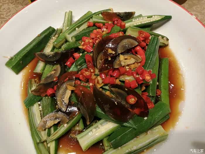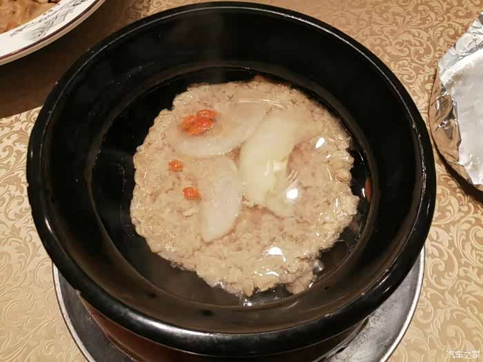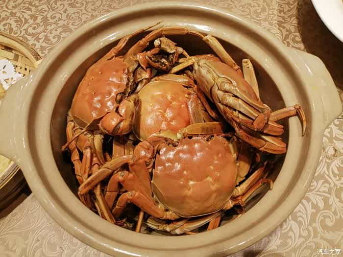 大概10分钟就开始上菜了,10多个菜上齐不到半小时,基本上算是快的了。今天点的菜有特色蒙古烤羊排、清蒸鲍鱼、清蒸大闸蟹、红烧牛腩、莲藕排骨、梅菜扣肉、蒜蓉海蛏子、肉片腐竹煲、酱烧山药、开胃甜蜜豆、清炒油麦菜、文蛤蒸蛋、捞汁秋葵拼皮蛋、雪梨肉饼汤、印度甩饼等。