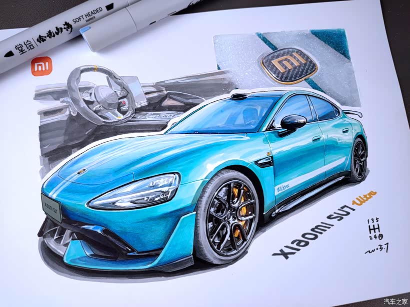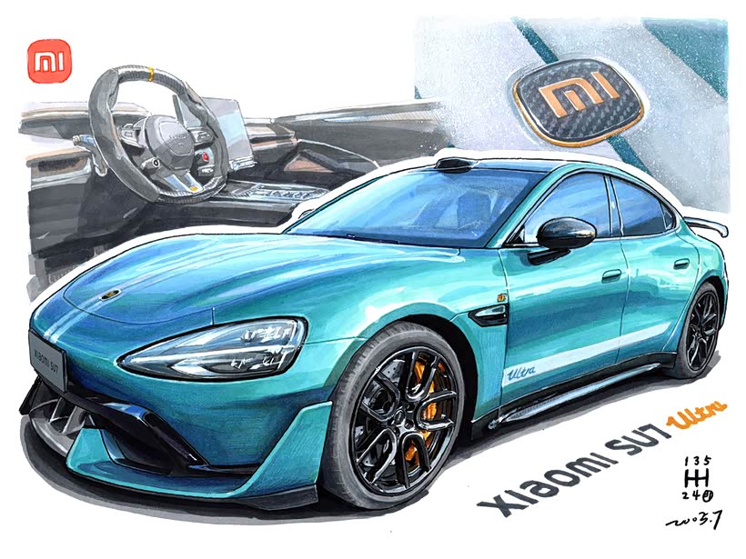 哈喽大家好,爱车画车的信念小8。好久没有马克笔画车了,重拾画笔。这次手绘曼叔的小米SU7 Ultra ,@伊格拜德曼 全国小米车友会会长,这是实力派!我画的还是有点慢了…因为…画之前,还是小米SU7 Ultra车主?,画完之后,已经是SU7 Ultra、YU7双车车主了
