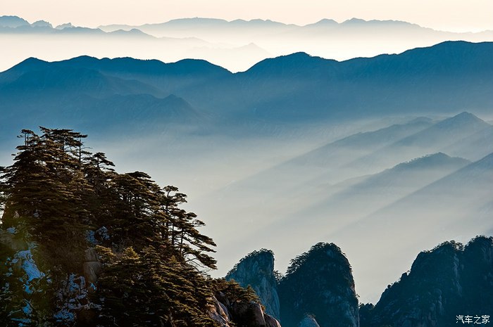 对于婺源的秋色早有耳闻,且在各种摄影网和旅游网上见过。那如火如荼的枫叶,配以特色的徽派建筑,加之炊烟、云雾烘托,美轮美奂;小桥流水,村姑浣衣,鸭儿戏水,无不吸引着摄影爱好者和游客纷至杳来。向往已久,决定今年成行。原计划11月22日出发,奈何同行者有事,拖至12月。由于今年连续下了几场秋雨,等我们到了的时候叶子大部分都掉光了,有些遗憾。在此提醒大家,一定要去之前打听好红叶和天气的信息。婺源拍秋或看秋,最经典的是晨拍石城,晚拍长溪,有阳光的日子拍篁岭晒秋。不过我们在黄山早晨赶上了小云海,算是给这次行程一个小安慰。下面就请大家跟着我的镜头游览祖国的大好河山吧