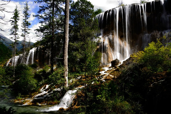 诺日朗瀑布:诺日朗在藏语里是雄伟壮阔的意思。瀑布落差20米,宽达300米,是九寨沟众多瀑布中最宽阔的一个。磅礴大气地翻越海拔2365米的钙化堤埂,飞泻而下,千万颗水珠织成一道宽银幕呈现在你眼前。不论从哪一个角度观赏,诺日朗都同样动人心魄!