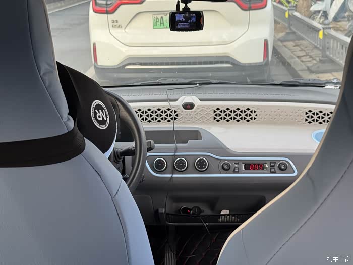 内饰就是简洁风了,都是塑料材质,仪表有一个小的液晶屏,简单地显示 车辆的部分信息,中控台上没有屏幕显得很LOW,还好布局还算合理,搭配了物理按键,操作非常简单明了,原车双色搭配,色彩组合还是蛮温馨的,座椅采用的是织物材质,我加了一套座椅垫,平常也好打理,空调出风口是网格状设计,也算一个小有个性的样子,总体就是突出实用性和性价比。