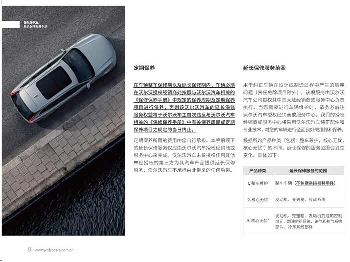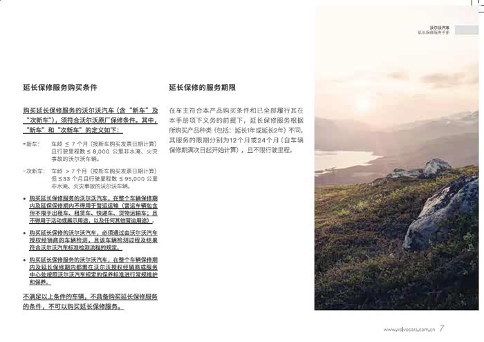 购买延长保修服务的沃尔沃汽车(含“新车”及“次新车”),须符合沃尔沃原厂保修条件。