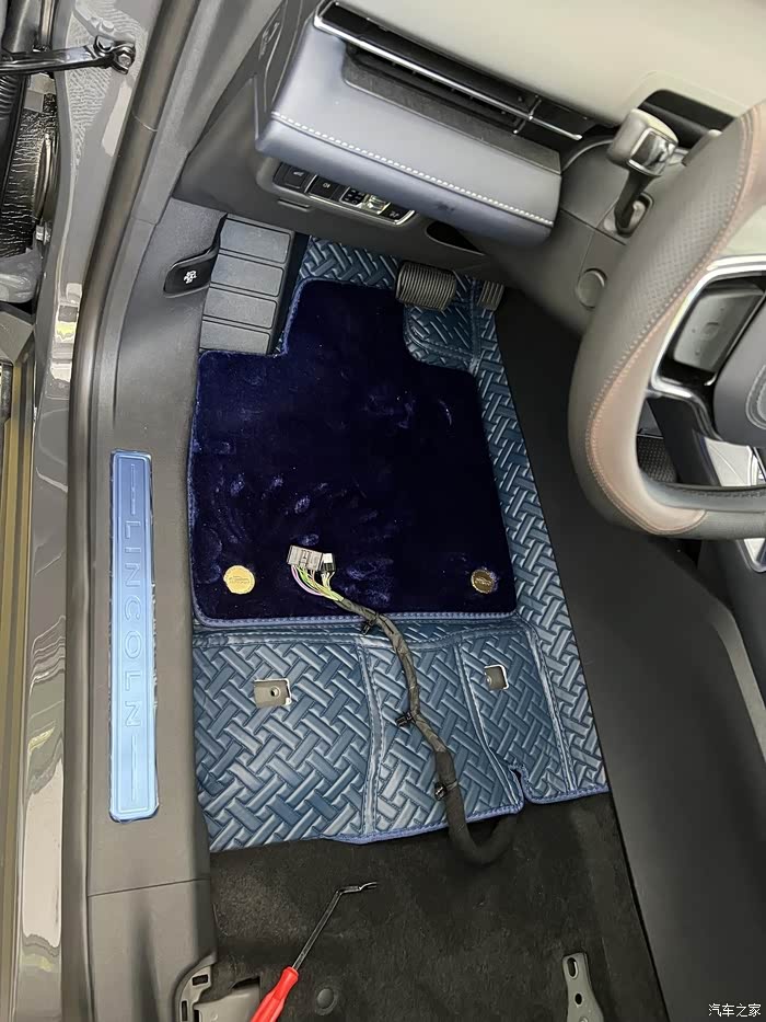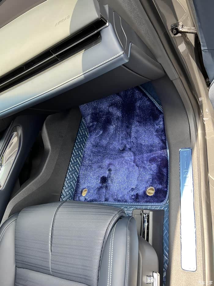 随后在4S指定的装潢店选了360航空软包颜色,因为内饰颜色是星轨蓝,所以选了蓝色,然后现场看一个星空色的脚垫挺好看,没忍住加了360上蓝色星空垫,(本来出门前都决定好装潢不加钱的,但是想想林肯之道售后商城一套星空垫要3300,心里就平衡了)是定做后过了几天才安装的,这里直接上图了!